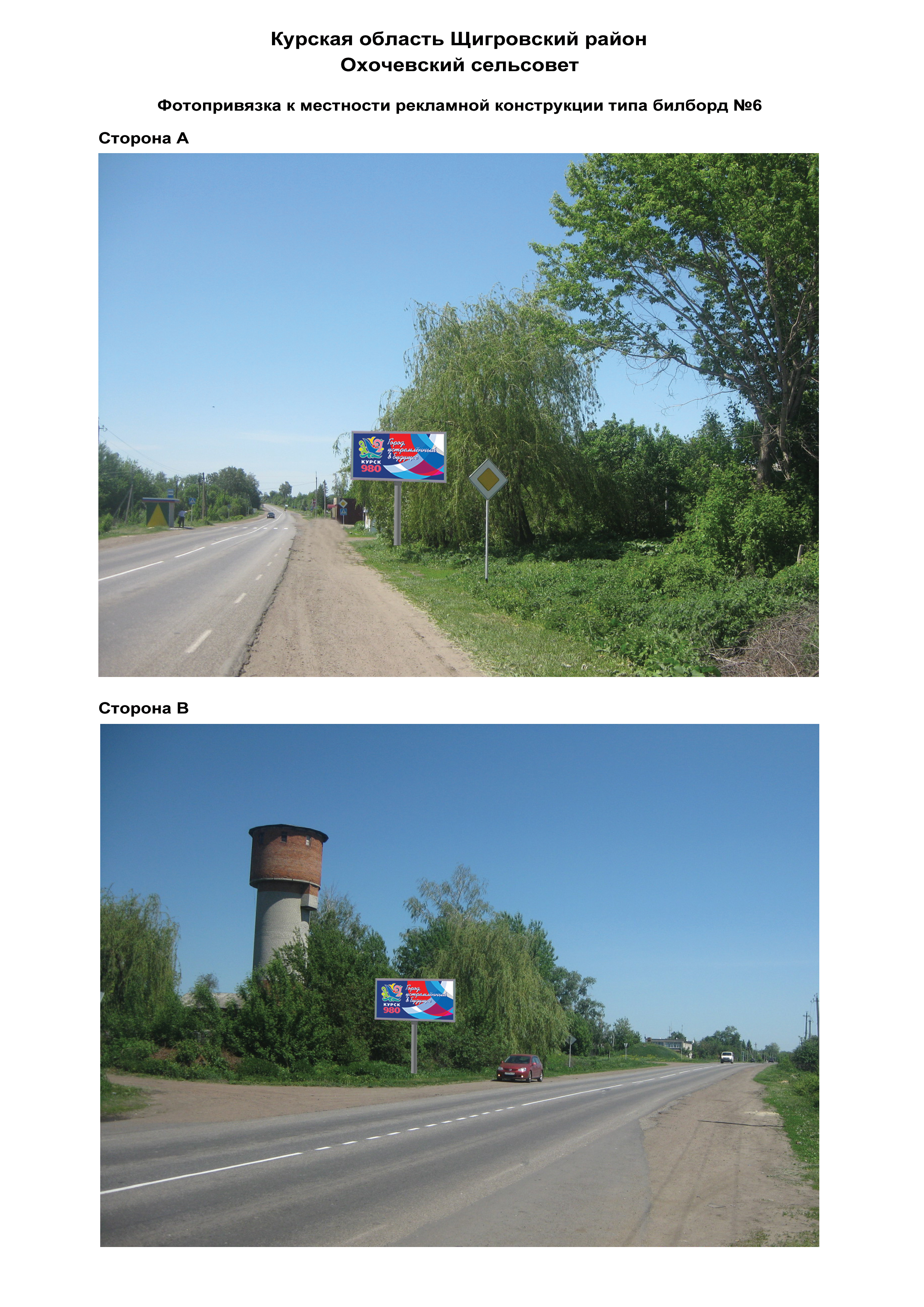 Фотопривязка к местности рекламной конструкции типа билборд № 6 в Охочевском сельсовете Щигровского района Курской области